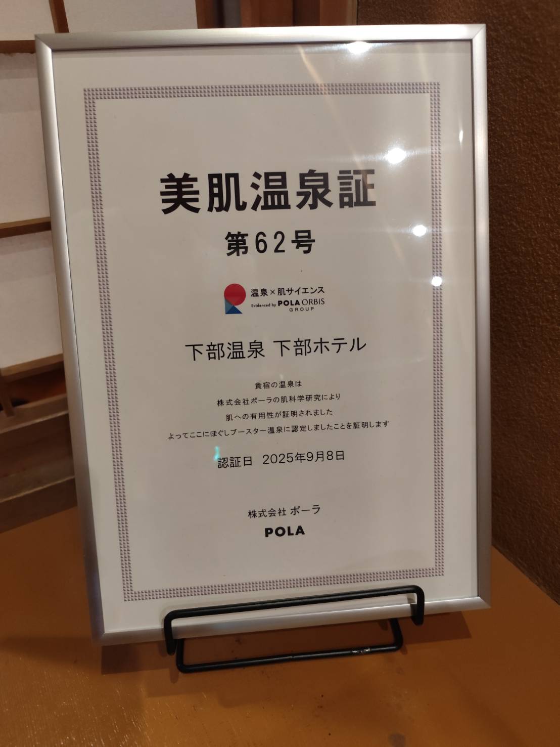 さぁ、お風呂を出て靴を履こうとしたところ、こちら発見!POLAさんから美肌温泉証なるものが♡美容にも健康にも効能ばっちりです。