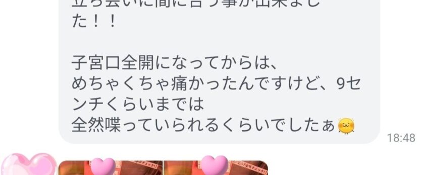 子宮口が全開になってからはさすがに痛みは強かったそうですが、